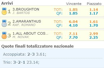 Ippica, Merano: Oggi 14/06 Risultati 1^, 2^, 3^ e 4^ Corsa Vincono Airsive, Broughton, Ragner e Gold Edition 1^ Corsa Premio Cermes vinta da Airsive 2^ Corsa Premio Giulio Coccia vinta da Broughton 3^ Corsa Premio Castel Rametz vinta da Ragner 4^ Corsa Premio Lagundo vinta da Gold Edition Condividi sul web: Fai clic per condividere su Facebook (Si apre in una nuova finestra) Facebook Fai clic per condividere su WhatsApp (Si apre in una nuova finestra) WhatsApp Fai clic per condividere su Telegram (Si apre in una nuova finestra) Telegram Fai clic per condividere su X (Si apre in una nuova finestra) X Fai clic qui per stampare (Si apre in una nuova finestra) Stampa Fai clic per inviare un link a un amico via e-mail (Si apre in una nuova finestra) E-mail Mi piace Caricamento... Correlati