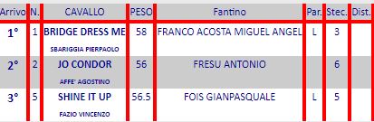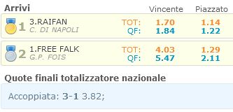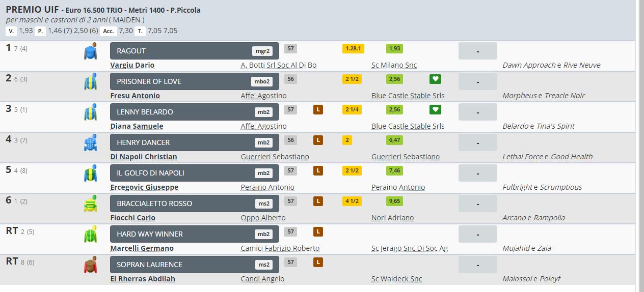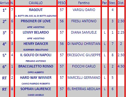 Ippica, Roma: Oggi 16/06 Risultati 1^, 3^, 4^ e 5^ Corsa Vincono Raifan, Himlice, Bridge Dress Me e Ragout 1^ Corsa Premio Red Arrow vinta da Raifan 3^ Corsa Premio Paola Bella vinta da Himlice 4^ Corsa Premio Criterium di Roma vinta da Bridge Dress Me 5^ Corsa Premio Uif vinta da Ragout Condividi sul web: Condividi su Facebook (Si apre in una nuova finestra) Facebook Condividi su WhatsApp (Si apre in una nuova finestra) WhatsApp Condividi su Telegram (Si apre in una nuova finestra) Telegram Condividi su X (Si apre in una nuova finestra) X Stampa (Si apre in una nuova finestra) Stampa Invia un link a un amico via e-mail (Si apre in una nuova finestra) E-mail Mi piace Caricamento... Correlati
