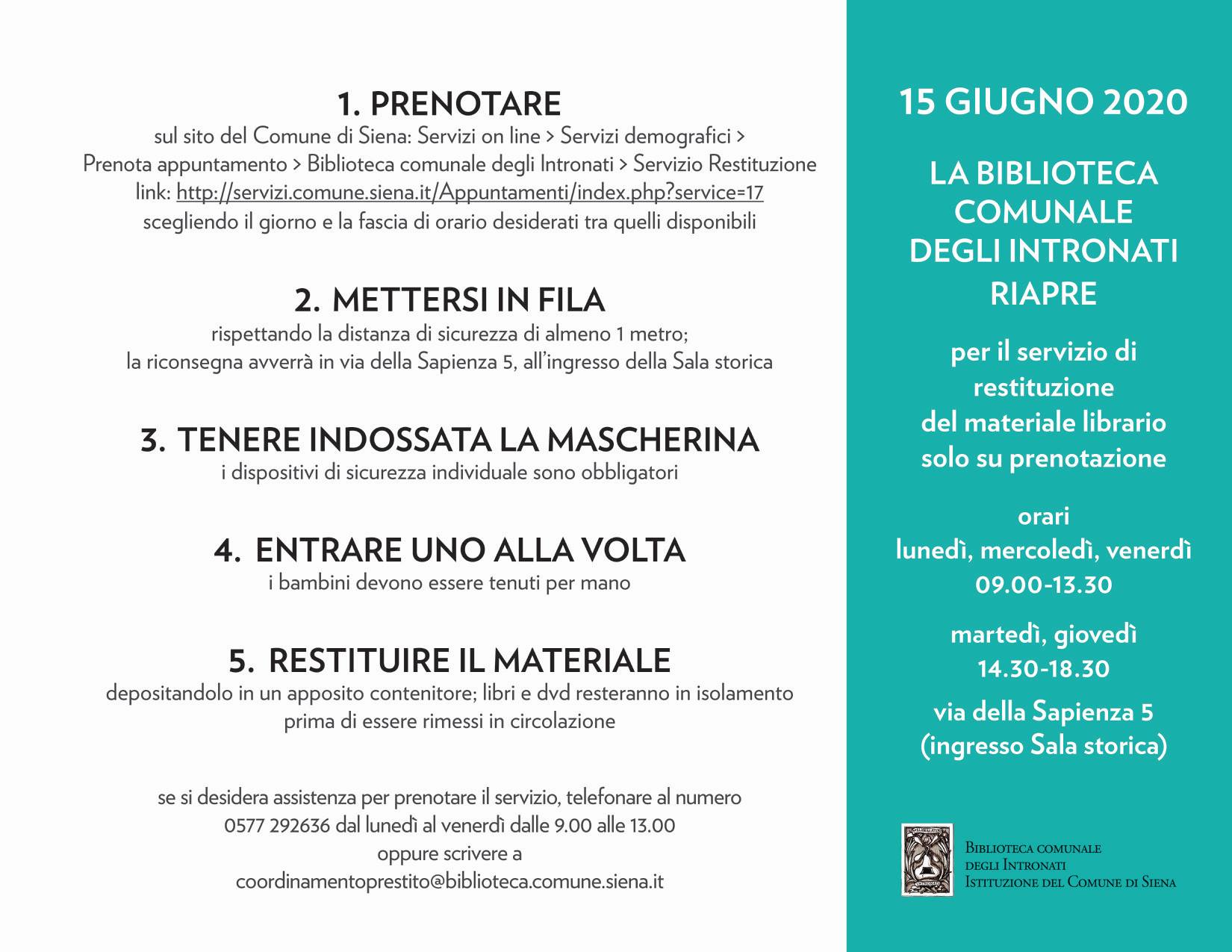 Ieri 15/06 prima giornata di restituzione del prestito su prenotazione alla