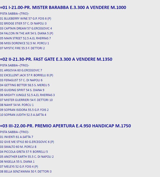 Ecco qua sotto i partenti del Convegno di Corse di domani 18/06 a Corridonia
