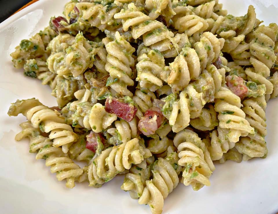 - Quando la pasta sarà cotta versarla nella padella insieme alla crema di zucchine, amalgamare bene il tutto e aggiungere la pancetta. Ed ecco che il vostro piatto è pronto per essere servito