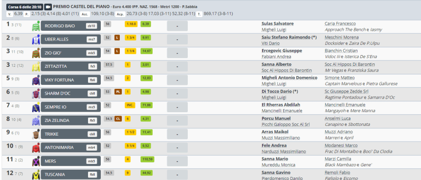 La sesta corsa è stata vinta da Rodirgo baio da Approach the Bench e Iasmy di proiprietà di Caria Francesco , allenato da Migheli Luigi e montato da Sula Salvatore