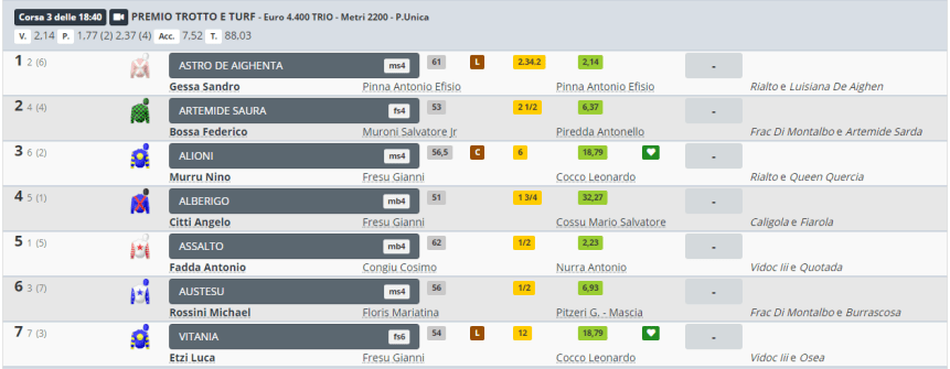 Oggi 17/07 all’Ippodromo Pinmna di Sassari si sono svolte tre corse per cavalli Anglo-Arabi. la terza corsa è stat vinta da Astro de Aighenta da Rialto e Luisiana de Aighentadi proprietà di Pinna Antonio Efisio, allenato da Pinna Antonio Efisio e montato da Gessa Sandro.