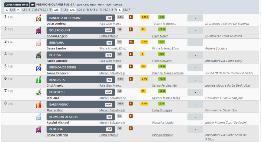 La quinta corsa è stata vinta da Bandiera de Bonorva da Dr Devious e Soraya de Bonorva, di proprietà di Testoni Francesco, allenato da Pala Gian marco e montato da Deias Andrea