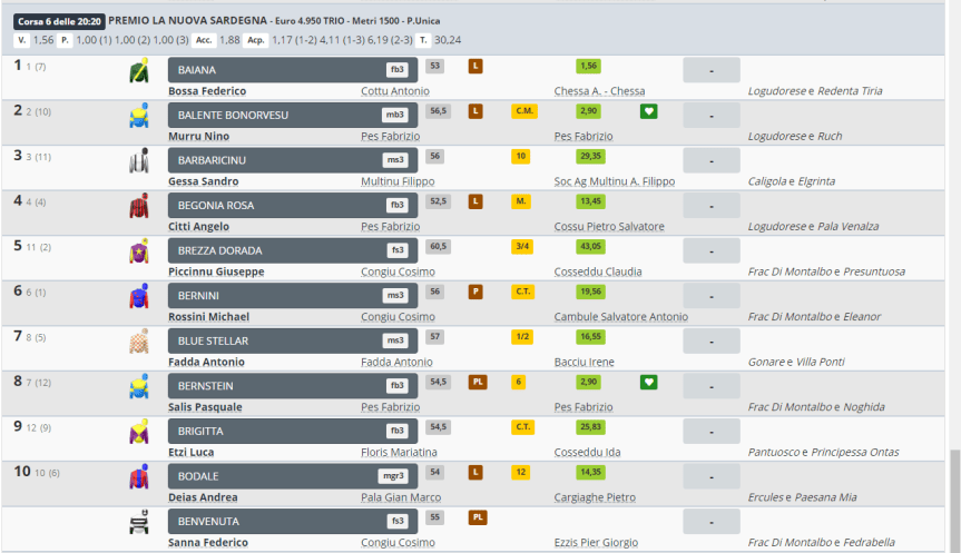 La sesta corsa è stata vinta da Baiana da Logudorese e Redenta Tiria di prirpeità di ChessaA.- Chessa, allenato da Cottu Antonio e montato da Bossa Federico