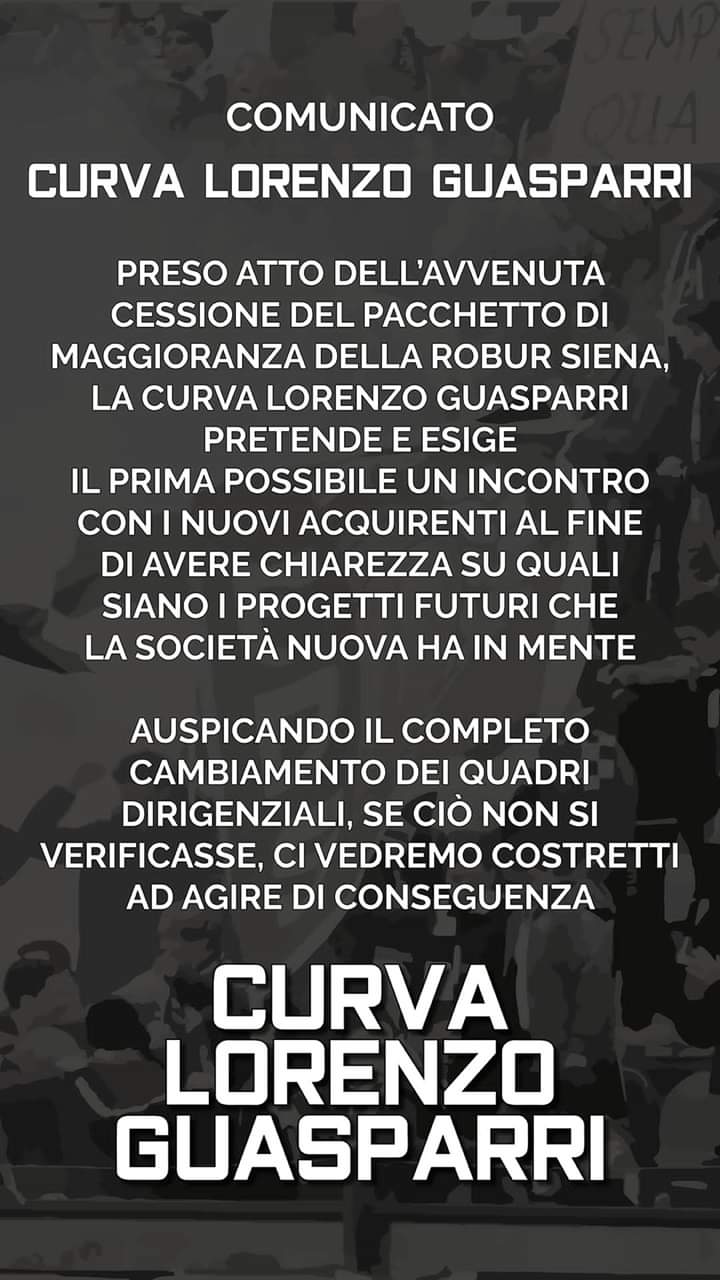 Siena, Robur Siena: Oggi 22/07 Comunicato Stampa Curva Lorenzo Guasparri Qua sotto trovate il Comunicato della Curva Lorenzo Guasparri redatto dopo la riunione dei componenti della Curva di ieri 21/07 Condividi sul web: Fai clic per condividere su Facebook (Si apre in una nuova finestra) Facebook Fai clic per condividere su WhatsApp (Si apre in una nuova finestra) WhatsApp Fai clic per condividere su Telegram (Si apre in una nuova finestra) Telegram Fai clic per condividere su X (Si apre in una nuova finestra) X Fai clic qui per stampare (Si apre in una nuova finestra) Stampa Fai clic per inviare un link a un amico via e-mail (Si apre in una nuova finestra) E-mail Mi piace Caricamento... Correlati