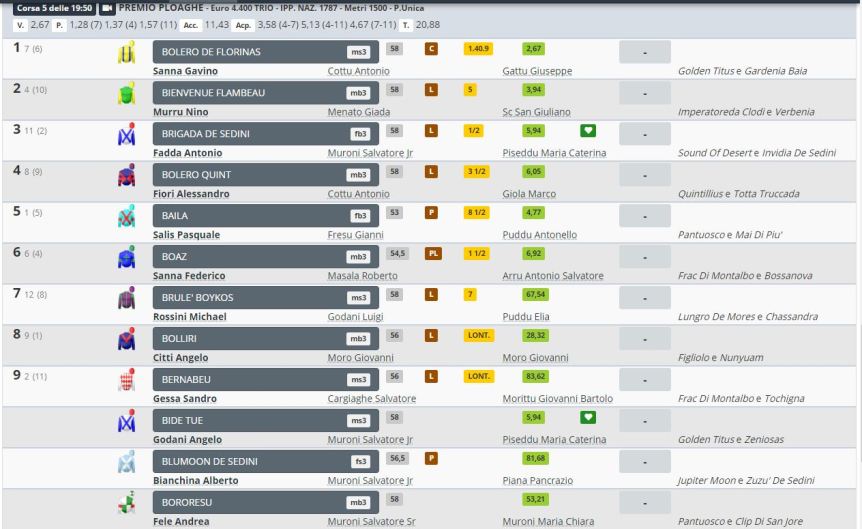 La 5^ Corsa è stata vinta da Bolero de Florinas ( da Golden Titus e Gardena Baia, di proprietà di Gattu Giuseppe, allenato da Cottu Antonio e montato da Sanna Gavino ). Qua sotto risultati e quote