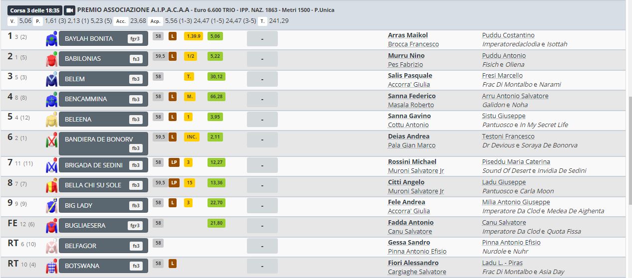 Oggi 13/08 all’Ippodromo Pinna si sono svolte 3 Corse per cavalli Anglo-Arabi. La 3^ Corsa è stata vinta da Baylah Bonita ( da ImperatoredaClodia e Isottah, di proprietà di Puddu Costantino, allenato da Bricca Francesco e montato da Arras Maikol ). Qua sotto risultati e quote