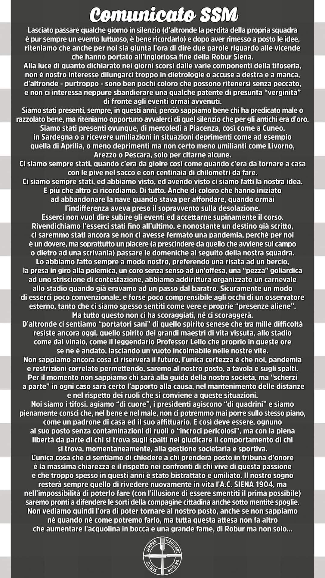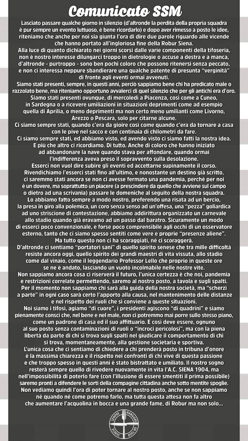 Qua sotto il Comunicato Stampa di SSM Siena Sempre Mangiare