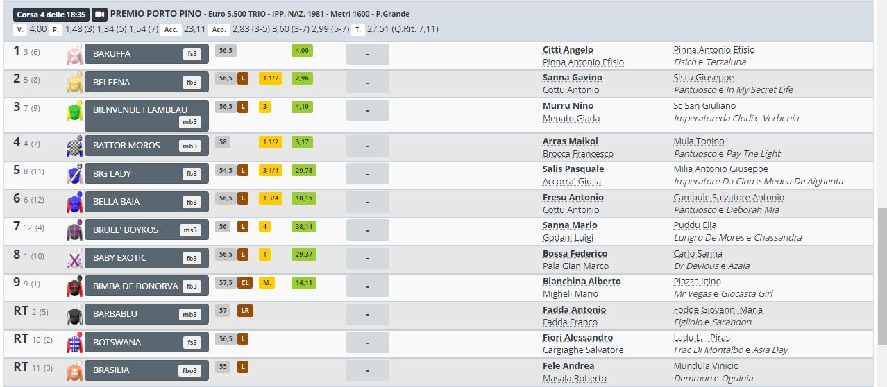 La 5^ corsa è stata vinta da Baruffa ( da Fisich e Terzaluna di proprietà di Pinna Antonio Efisio e, allenato da Pinna Antonio Efisio e montato da Citti Angelo ). Qua sotto risultati e quote