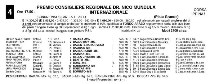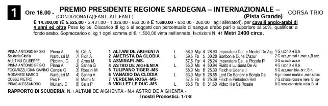 Ippica, Chilivani: Domani 05/09 Partenti 1^,3^ e 4^ Corsa per cavalli Anglo-Arabi 1^ Corsa Premio Presidente Regione Sardegna – Internazionale 3^ Corsa Premio Città di Ozieri – Internazionale 4^ Corsa Premio Consigliere Regionale DR. Nico Mundula – Internazionale Condividi sul web: Fai clic per condividere su Facebook (Si apre in una nuova finestra) Facebook Fai clic per condividere su WhatsApp (Si apre in una nuova finestra) WhatsApp Fai clic per condividere su Telegram (Si apre in una nuova finestra) Telegram Fai clic per condividere su X (Si apre in una nuova finestra) X Fai clic qui per stampare (Si apre in una nuova finestra) Stampa Fai clic per inviare un link a un amico via e-mail (Si apre in una nuova finestra) E-mail Mi piace Caricamento... Correlati