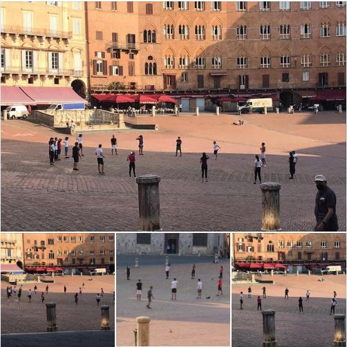 Attività fisica in piazza del Campo ai tempi del Covid: ecco alcuni studenti del liceo sportivo scientifico Galilei di Siena questa mattina