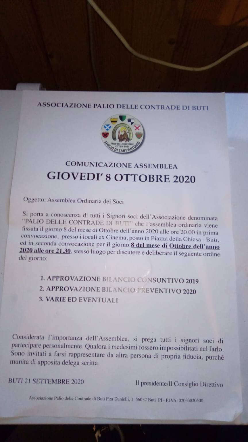 Palio di Buti: 08/10 Assemblea Soci Associazione Palio delle Contrade di Buti L’associazione Palio delle Contrade di Buti ha convocato l’assemblea dei Soci per il giorno 08/10. Qua sotto la convocazione Condividi sul web: Fai clic per condividere su Facebook (Si apre in una nuova finestra) Facebook Fai clic per condividere su WhatsApp (Si apre in una nuova finestra) WhatsApp Fai clic per condividere su Telegram (Si apre in una nuova finestra) Telegram Fai clic per condividere su X (Si apre in una nuova finestra) X Fai clic qui per stampare (Si apre in una nuova finestra) Stampa Fai clic per inviare un link a un amico via e-mail (Si apre in una nuova finestra) E-mail Mi piace Caricamento... Correlati