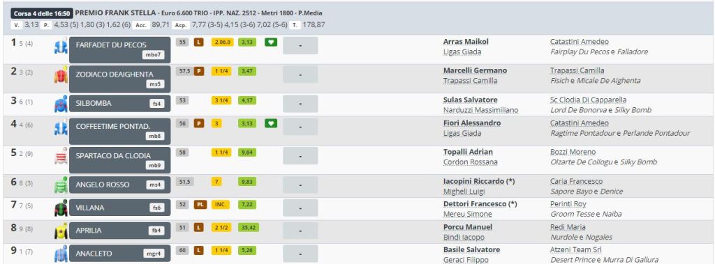 Oggi 11/10 a Firenze isonosvolte delle Corse , di cui due per cavalli Anglo-Arabi. La terza Corsa è stata vint da Farfadet du Peocs ( da Fairplay du Peco e Falladore, di proprietà di Catastini Amedeo, allenato da Ligas Giada e montato da Arras Maikol ). Qua sottto risultati e quote