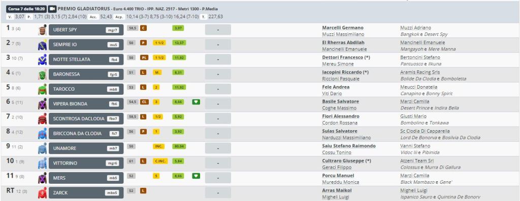 La settima Corsa è stata vintada Ubert Spy ( da Bangkok e Desert Spy, di porprietà di Muzzi Adriano, allenato da Muzzi Massimiliano e montato da Marcelli Gemano. ) Qua sotto risultati e quote