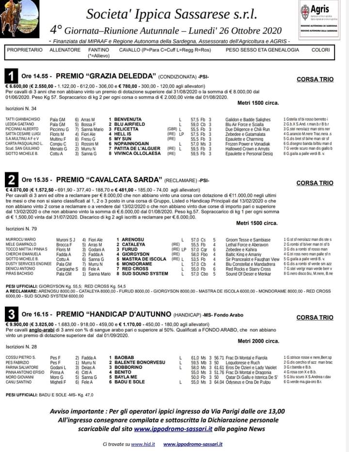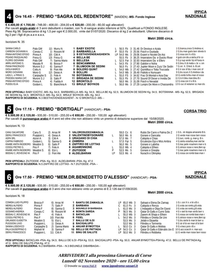 Qua sotto i partenti i Sassari del convegno di Lunedì 26/10. Vi ricordo che la 3 e 4 Corsa sono riservate ai cavalli Anglo-Arabi