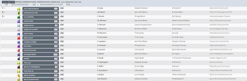 Oggi 31/01 in Francia presso l’Ippodromo di Vincennes si disputava il Prix d’Amerique 2021. La vittoria è andata al cavallo FaceTime Bourbon magistralmente guidato da driver : Goop che lo ha portato tranquillamente in prima posizione fin sul palio di arrivo.