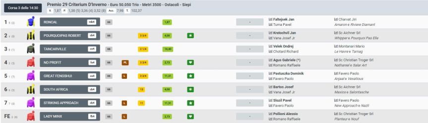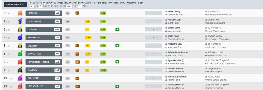 La 73^ Gran Corsa Siepi Nazionale è stata vinta da Edinson. per i risultati e quote guardare sotto