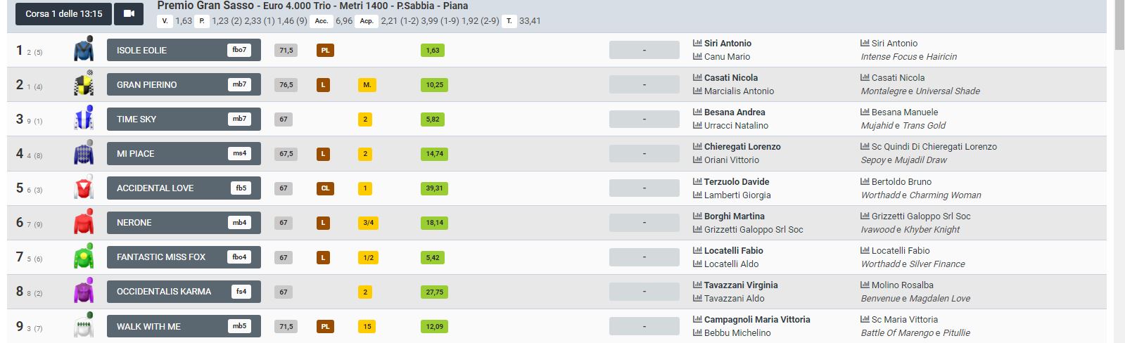 Risultati e quote