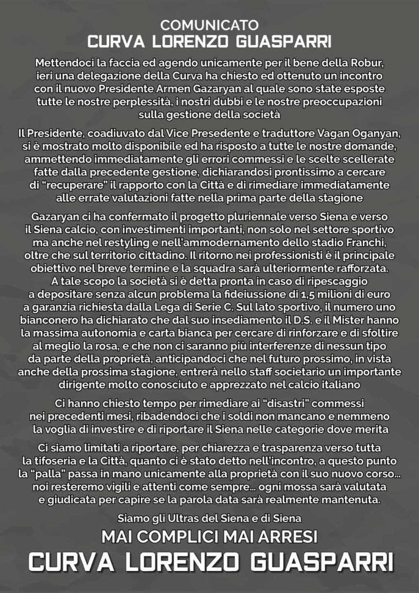 Per il comunicato stampa guardare sotto