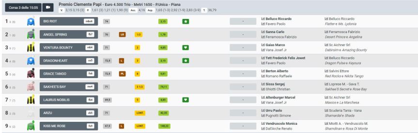 Oggi 06/03 si sono svolte delle Corse a Treviso presso l’Ippodormo San’Artemio, una delle quali riservate alla categoria G.R. e Amazzoni. Nella 3^ Corsa il fantino Carlo Sanna detto “Brigante” ha ottenuto un ottimo secondo posto a Treviso sul cavallo Angel Spring. La Corsa èstata vinta da Bellucco Riccardo su Big Riot, e il terzo posto è andato a Gais marco su Ventura Bounty. Altro orttimo piazzamento per “Brigante” che dimostra tutta la sua adattabilità a questo tipo di Corse.