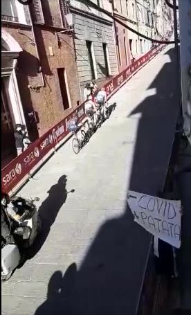 Oggi 06/03 si sono svolte a Siena e provincia la competizione Strade Bianche Eolo. All’arrivo a Siena, a pochi chilomentri dall’arrivo in piazza del Campo ha colpito, la simpatia e l’incitamento fatto ai corridori della gara maschile e alle ragazze di quella femminile, la dirompente simpatia del senese Giacomo Muzzi. Giacomo ha esposto un cartello, al passaggio della Corsa femminile che recitava “Viva Siena, Viva la Gnocca”, e al passaggio della gara maschile ha esposto il cartello “- Covid, +Patata”, questa volta indossando la maglia a scacchi dell’Acn Siena, sua squadra del cuore. Una simpatia dirompete che ha colpito tutti, dai partecipanti alla corsa, coloro che erano al seguito e anche chi faceva la diretta dietro gli atleti. Una simpatia che ha da sempre contraddistinto Giacomo, ma anche in questo giovane “citto” ( ragazzo detto in dialetto senese ), tanta ma tanta umanità, e lo testimonio io personalmente, ma anche le tante e tante iniziative che fa verso le persone meno fortunate. A Siena ci vorrebbero tanti Giacomo Muzzi, ma tanti, e per essere come lui ci vuole pocoe la ricetta è semplice: simpatia dirompente, umiltà, umanità e tanto ma tanto cuore.