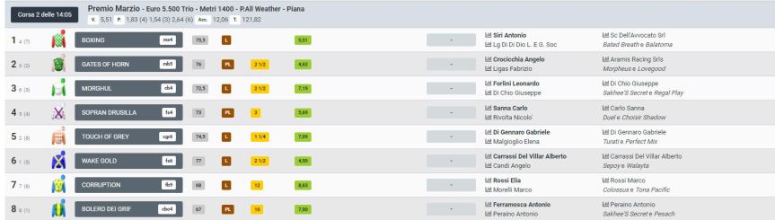 Oggi 12/03 a Roma presso l’Ippodormo Capannelle si sono svolte delle Corse, una delle quali riservate alla categoria G.R. La 2^ Corsa è stata vinta da Antonio Siri detto “Amsicora” sul cavallo Boxing della Scuderia Lg. di Di Dio L. e G. Grande affermazione per “Amsicora” che dimostra ancora una volta la sua bravura e adattabilità a questo tipo di Corse, oltre che nei Palii e Corse in Provincia. Al secondo posto Angelo Crocicchia su Gates of Horn e terzo Leonardo Forlini su Moghurl. Ha corso anche Carlo Sanna detto “Brigante” su Sopran Drusilla arrivando al quarto posto.