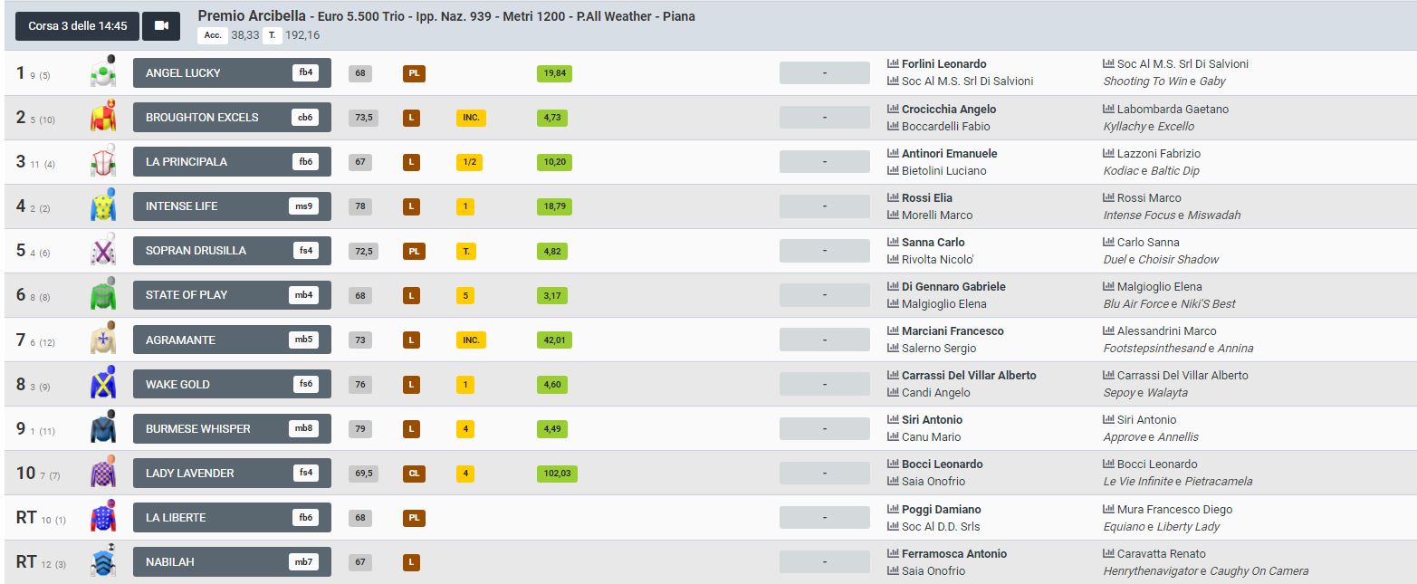 Oggi 30/03 a Roma presso l’Ippodromo Capannelle si sono svolte delle corse, una delle quali riservata alla categoria G.R. La 3^ costa è stata vinta da Leonardo Forlini su Angel Lucky, al secondo posto Angelo Crocicchia su Broughton Excels e terzo posto per Emanuele Antinori su La Principala. Dei fantini che corrono nei Palii e Corse in Provincia segnalo il 5° posto per Carlo Sanna detto “Brigaante” sul proprio cavallo Sopran Drusilla e il 9° posto per Antonio Siri detto “Amsicora” sul proprio cavallo Burmese Whisper.
