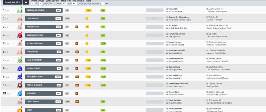 Oggi 20/04 a Roma presso l’Pppodromo Capannelle si sono svolte delle corse delle quali una riservata alla categoria G.R. la 2^ corsa è stata vinta da Carlo Sanna detto “Brigante” su General Lilbourne, secondo Alberto Carrassi Del Villar su Dune Buggy e terzo Antonio Siri detto Amsicora su Alias Dei Grif. Bella vittoria per “Brigante” che si conferma un asso vero e proprio in G.R. Segnalo le cadute di Alberto Poggi chre montava Dear Gamps e di Leonardo Forlini che montava Kibet