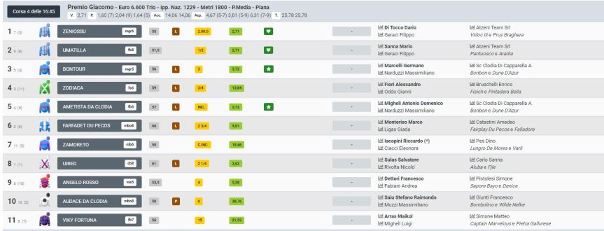 Oggi 22/04 a Firenze presso l’Ippodromo Visarno si sono svolte delle corse, una delle quali riservate ai cavalli Anglo-Arabi. La 4^ corsa è stata vinta da Zeniossu ( da Vidoc III e Prus Braghera, di proprietà di Atzeni Team Srl, allenato da Filippo Geraci e montato da Dario Di Tocco ). Al secondo posto Umatilla con Mario Sanna e al terzo posto Bontour con Germano marcelli. Per Atxeni team si tratta di un grande successo essendo i suoi prtacolori arrivati al primo e al secondo posto, monopolizzando i primi due gradini del podio.