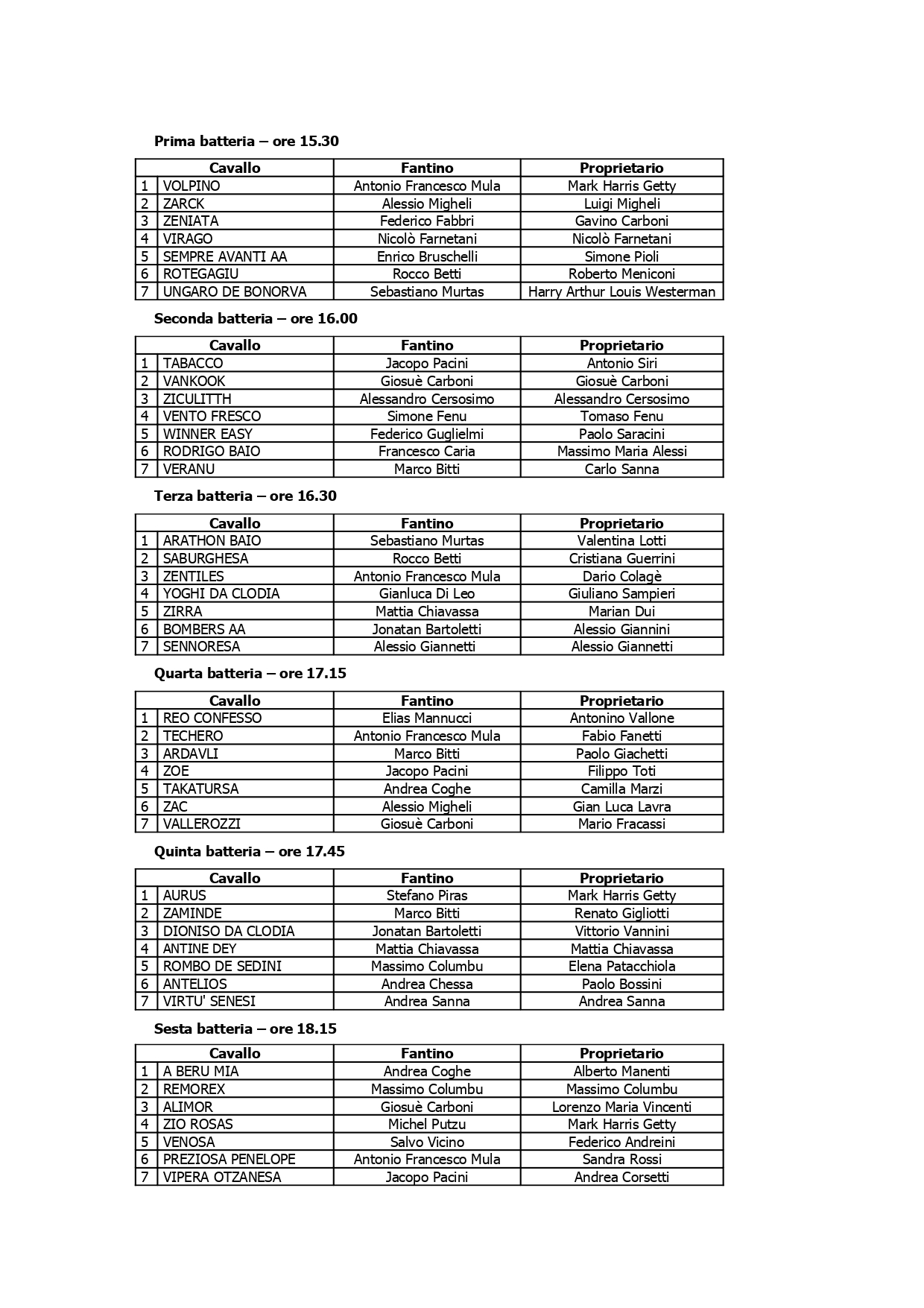 | 7 | UNGARO DE BONORVA | Sebastiano Murtas | Harry Arthur Louis Westerman |