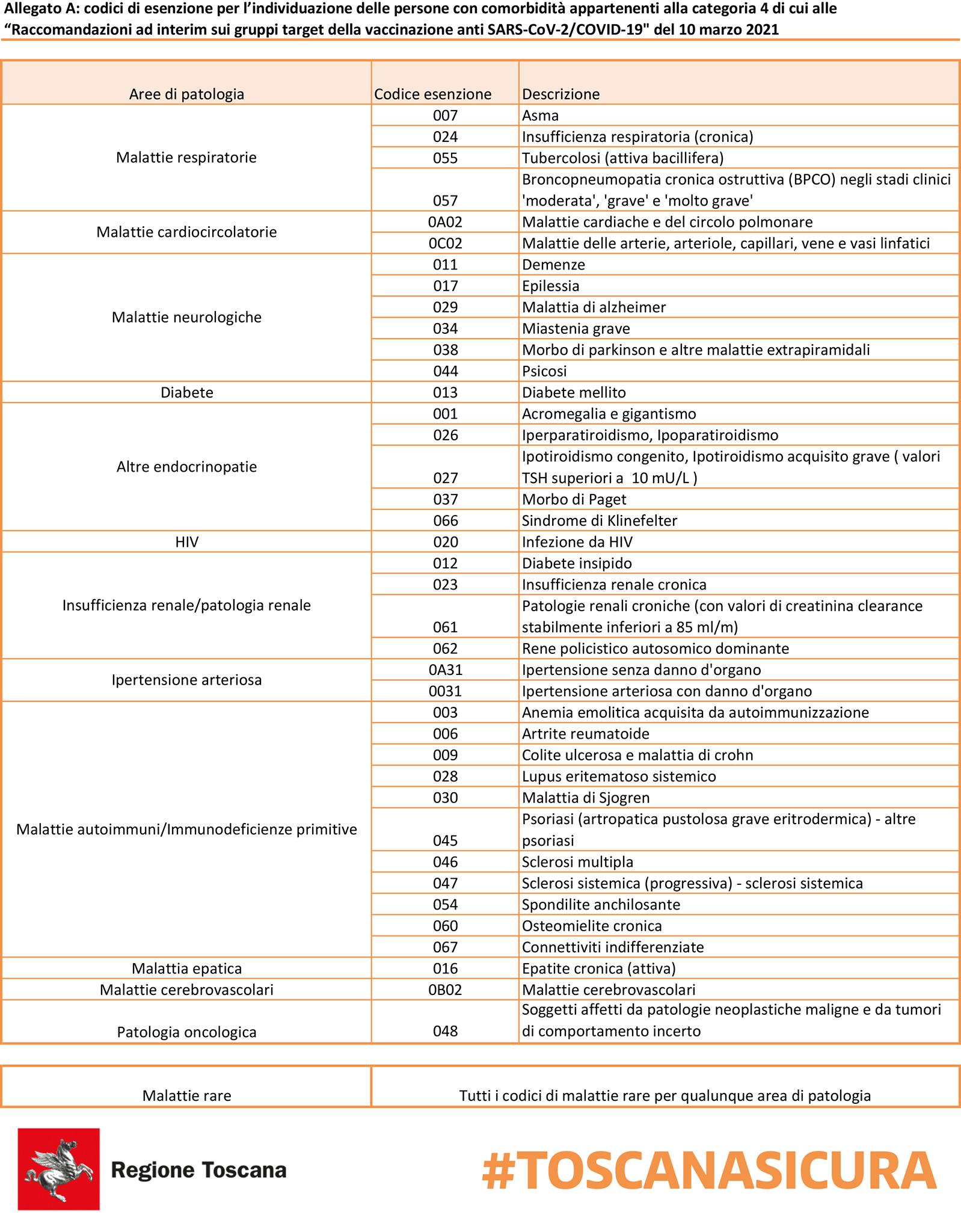 L’elenco delle patologie ed esenzioni ammesse ![]()
