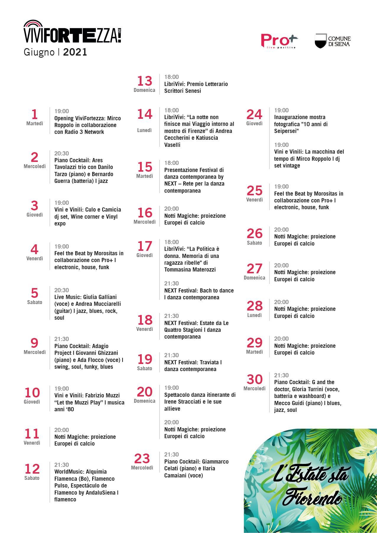 Ecco il programma di giugno, a breve tutti i dettagli dei singoli eventi