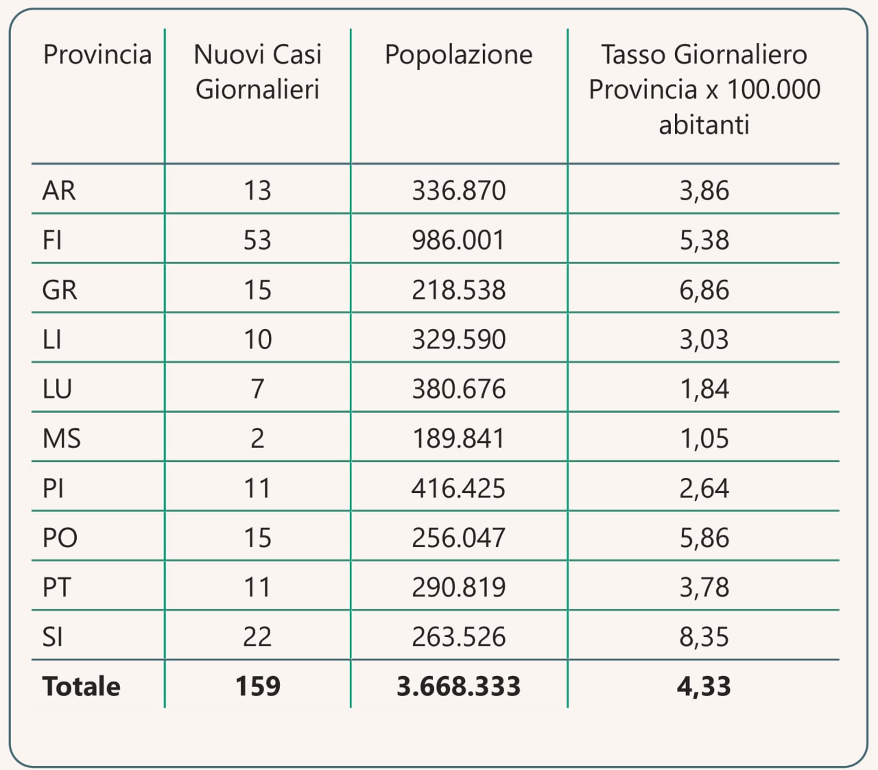📊I nuovi casi registrati in Toscana sono 159 su 16.200 test di cui 7.357 tamponi molecolari e 8.853 test rapidi. Il tasso dei nuovi positivi è 0,98% (3,1% sulle prime diagnosi).