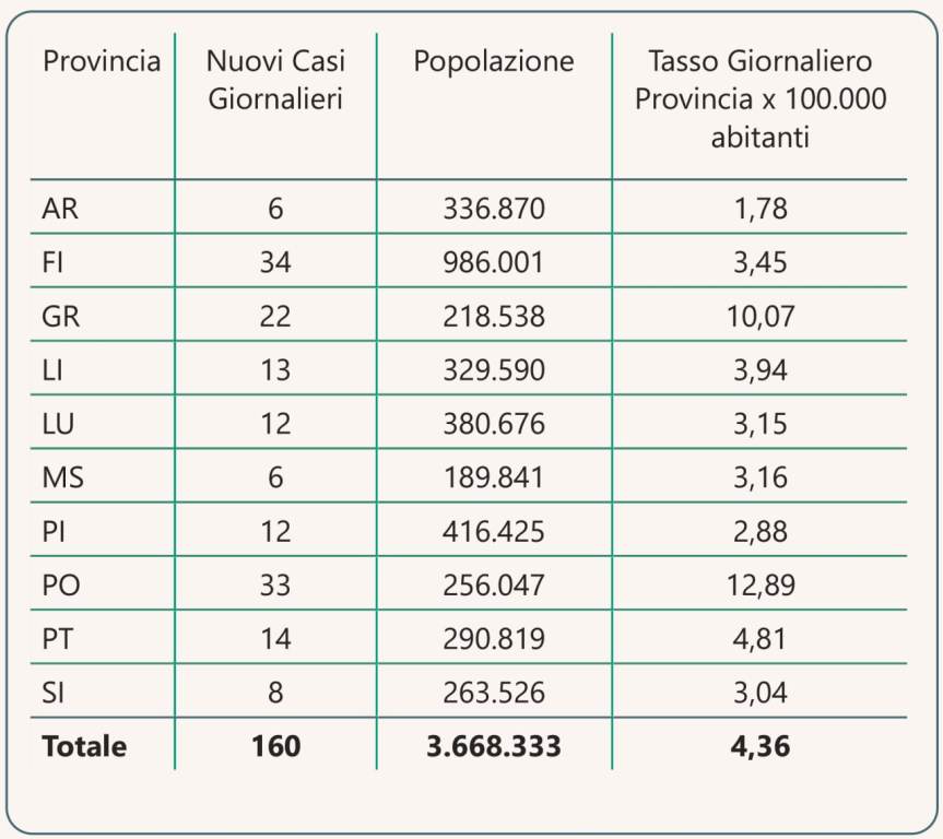 📊I nuovi casi registrati in Toscana sono 160 su 6.427 test di cui 4.994 tamponi molecolari e 1.433 test rapidi. Il tasso dei nuovi positivi è 2,49% (6,1% sulle prime diagnosi).