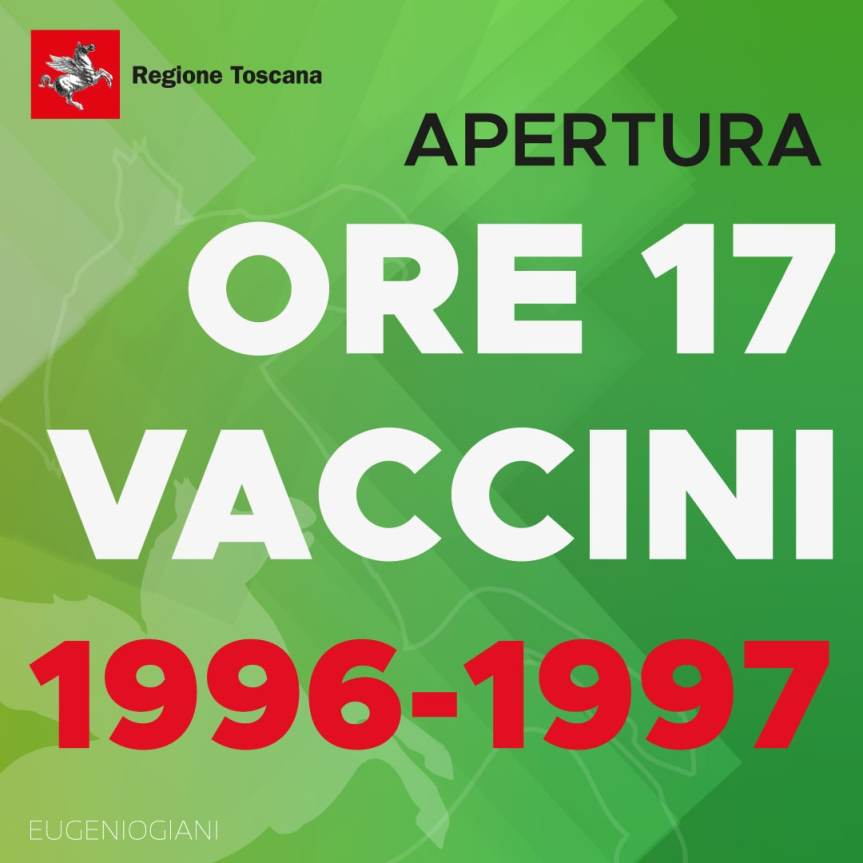 Dalle ore 17 di oggi aprono le prenotazioni per le persone nate in questi anni su http://prenotavaccino.sanita.toscana.it.