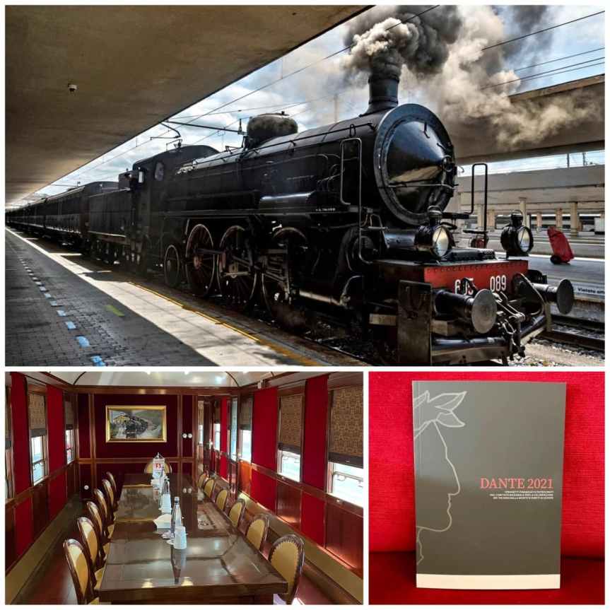 Il fischio della locomotiva a vapore fa partire il treno di Dante, un viaggio straordinario tra Firenze e Ravenna in occasione dei 700 anni dalla scomparsa del Sommo Poeta.