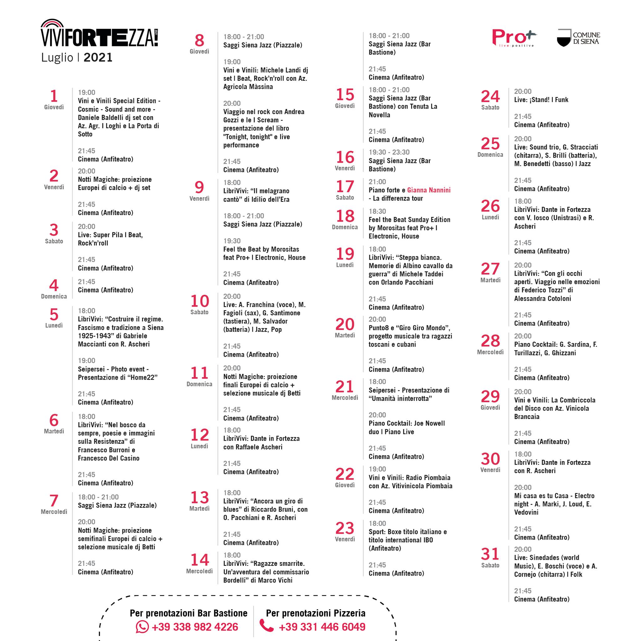 Siena: ViviFortezza, ecco il calendario degli eventi di Luglio 2021 Tutti gli eventi di Luglio, non perdeteveli!!! *** Per info e prenotazioni tavoli bastione inviare un messaggio whatsapp al numero +39 338 982 4226 *** Continuano gli eventi di Vivi Fortezza Siena ! Ecco il calendario di #Luglio! Condividi sul web: Fai clic per condividere su Facebook (Si apre in una nuova finestra) Facebook Fai clic per condividere su WhatsApp (Si apre in una nuova finestra) WhatsApp Fai clic per condividere su Telegram (Si apre in una nuova finestra) Telegram Fai clic per condividere su X (Si apre in una nuova finestra) X Fai clic qui per stampare (Si apre in una nuova finestra) Stampa Fai clic per inviare un link a un amico via e-mail (Si apre in una nuova finestra) E-mail Mi piace Caricamento... Correlati