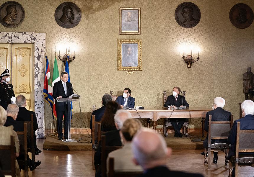 Il Presidente del Consiglio, Mario Draghi, è intervenuto all’Adunanza solenne di chiusura dell’anno accademico dell’Accademia Nazionale dei Lincei, a Palazzo Corsini.