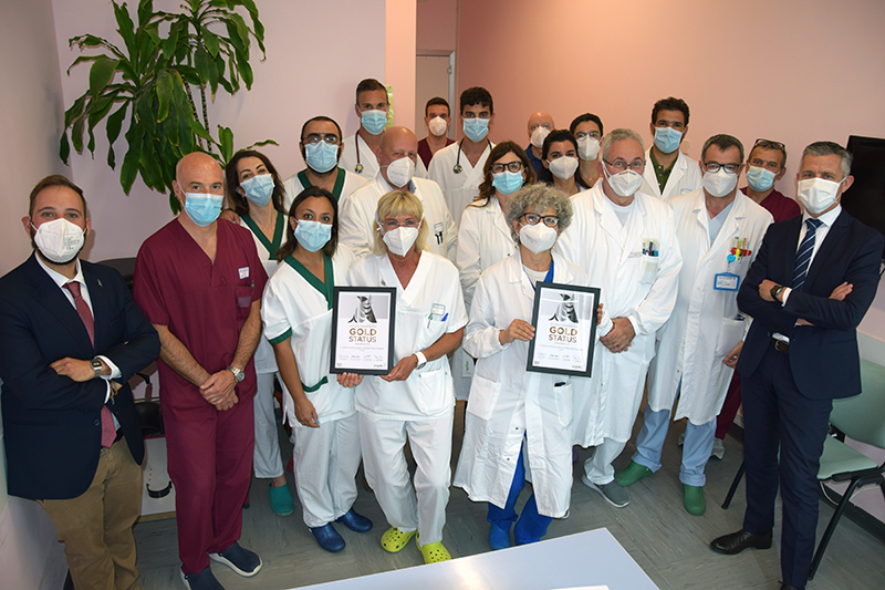 Prestigioso riconoscimento internazionale per il team multidisciplinare del percorso Stroke dell’Azienda ospedaliero-universitaria Senese. Per l’European Stroke Organisation, in base ai criteri della piattaforma dei Premi Angels ESO, l’Aou Senese è centro oro, con il trattamento di oltre il 50% dei pazienti entro 60 minuti per la fibrinolisi sistemica ed entro 90 minuti per la trombectomia meccanica. Il riconoscimento è stato consegnato dal dottor Lorenzo Bazzani, Angels Consultant, al team del percorso Stroke, formato dalla Stroke Unit diretta dal professor Giuseppe Martini e dalla Neuroradiologia Interventistica diretta dalla dottoressa Sandra Bracco. Presente alla consegna il direttore generale dell’Aou Senese, il professor Antonio Barretta, e tutti i professionisti che collaborano fattivamente al percorso Stroke.