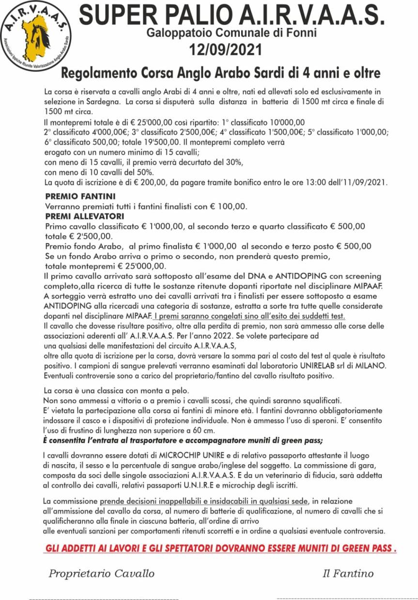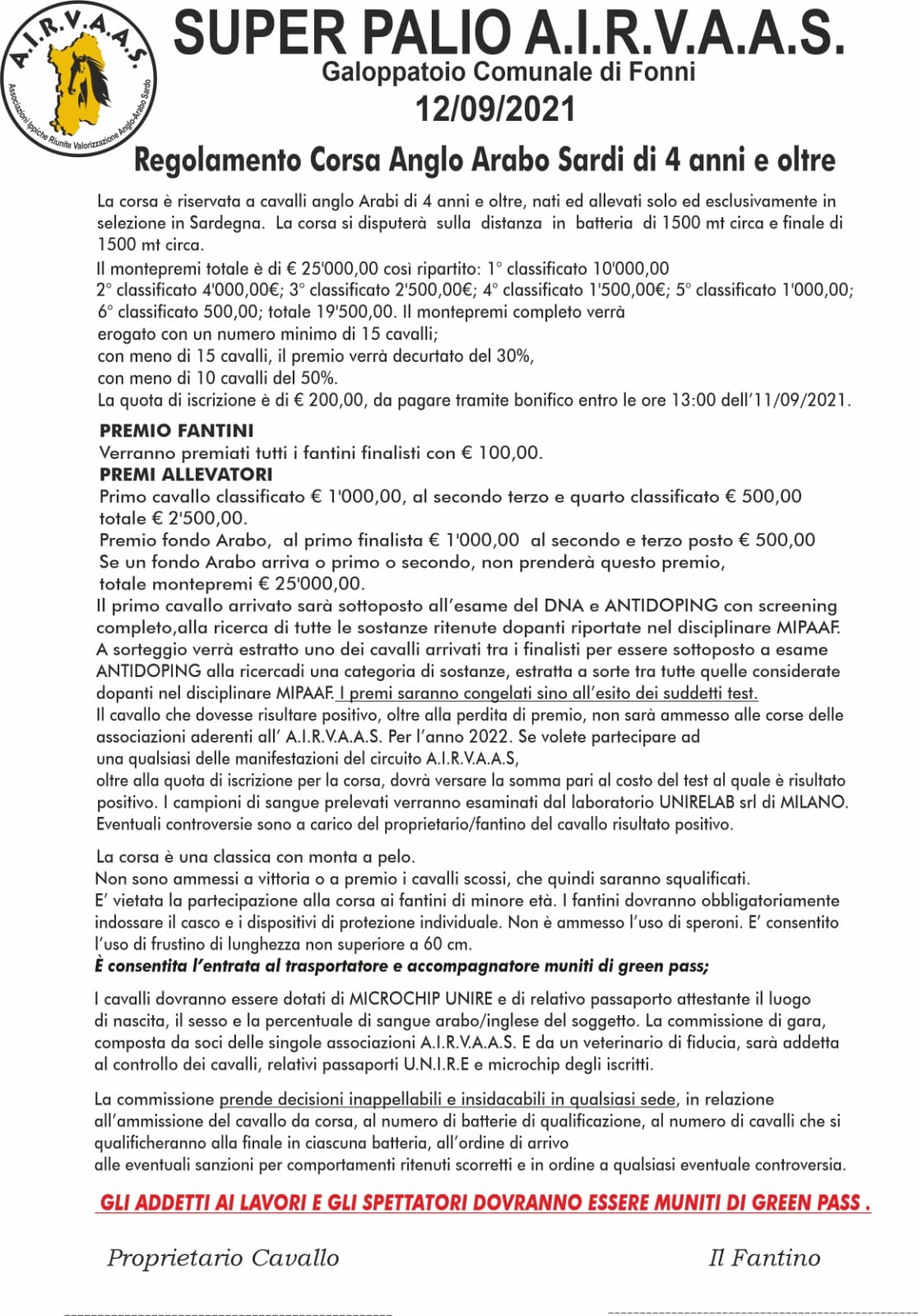 Qua sotto il regolamento del Super palio organizzato a Fonni dall’Airrvaas il 12/09