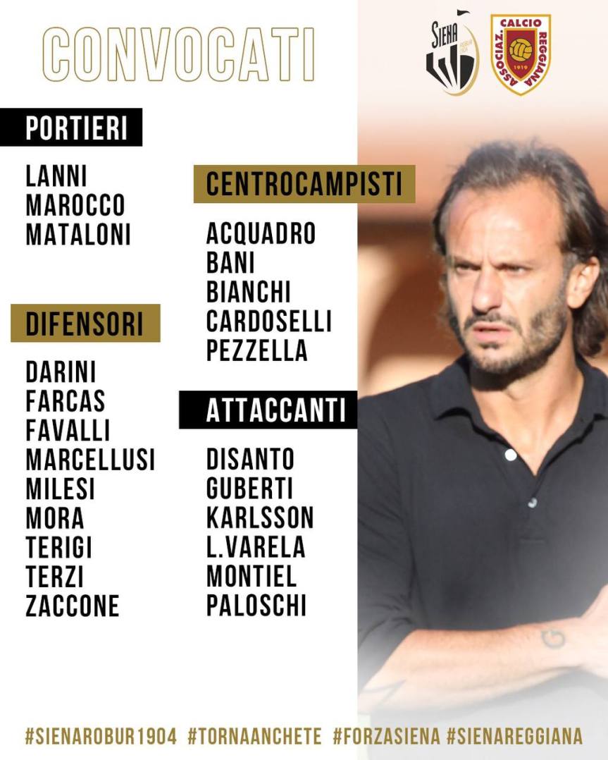 Sono 2️⃣3️⃣ i convocati da Mister Gilardino per la sfida di domani tra Siena e Reggiana