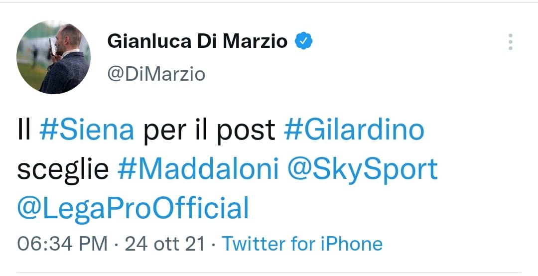 Gianluca Di Marzio poco fa ha lanciato un tweet nel quale svela che il nuovo allenatore bianconero sarà Massimiliano Maddaloni.