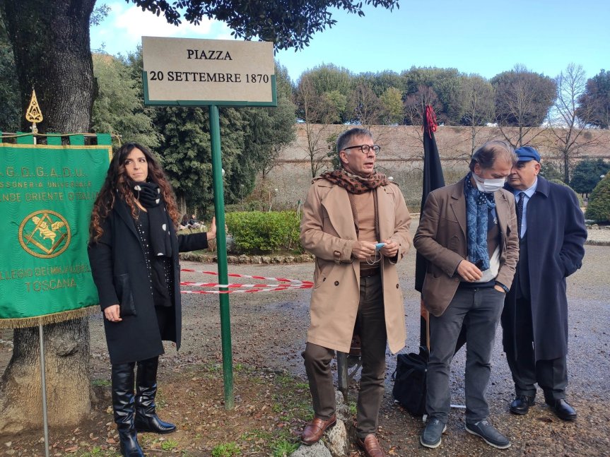 La richiesta di rendere omaggio alla giornata della breccia di Porta Pia, episodio del Risorgimento che sancì l’annessione di Roma al Regno d’Italia, era stata avanzata dall’Associazione nazionale del Libero Pensiero “Giordano Bruno” sezione di Siena in occasione della ricorrenza del 150° anniversario dell’Unità d’Italia e accolta positivamente dalla giunta comunale.