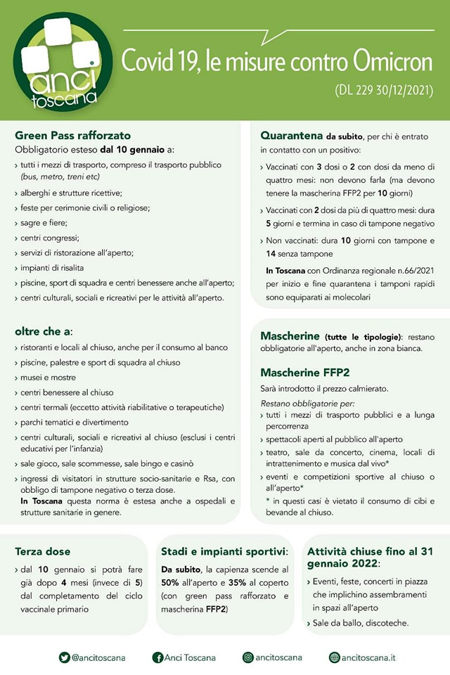 Siena: Riepilogo nuove norme per contenere il contagio da Covid-19, variante Omicron #COVID19 #Omicron Il #Governo ha varato le nuove norme per contenere l’epidemia. Ecco la scheda AnciToscana con il riepilogo delle misure Condividi sul web: Fai clic per condividere su Facebook (Si apre in una nuova finestra) Facebook Fai clic per condividere su WhatsApp (Si apre in una nuova finestra) WhatsApp Fai clic per condividere su Telegram (Si apre in una nuova finestra) Telegram Fai clic per condividere su X (Si apre in una nuova finestra) X Fai clic qui per stampare (Si apre in una nuova finestra) Stampa Fai clic per inviare un link a un amico via e-mail (Si apre in una nuova finestra) E-mail Mi piace Caricamento... Correlati