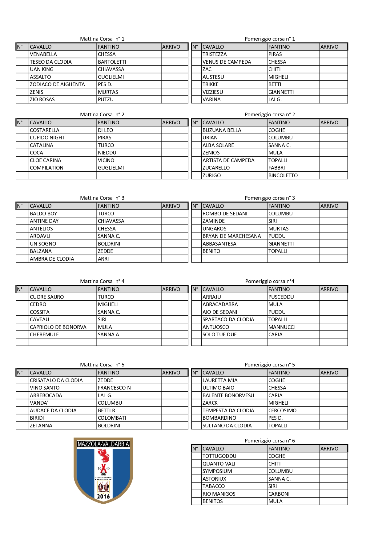 Mi sono giunte le batterie delle corse di Monteroni d’Arbia che si svolgeranno domenica 10/04 presso il locale campo sportivo, nella pista da Ippodromo che circonda il campo di calcio.. Le batterie del mattino inizieranno alle ore 10, mentre quelle del pomeriggio inizieranno alle ore 15. Qua sotto il dettaglio
