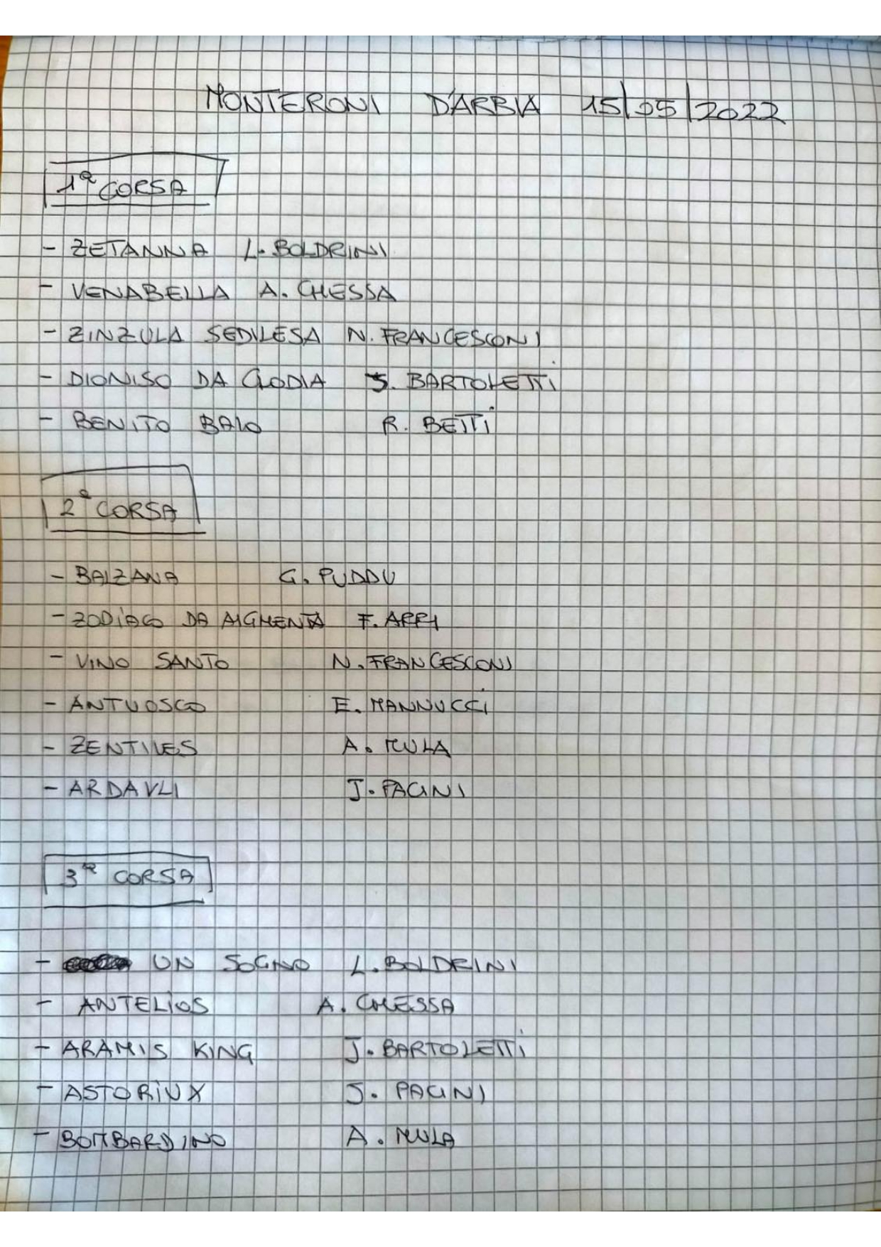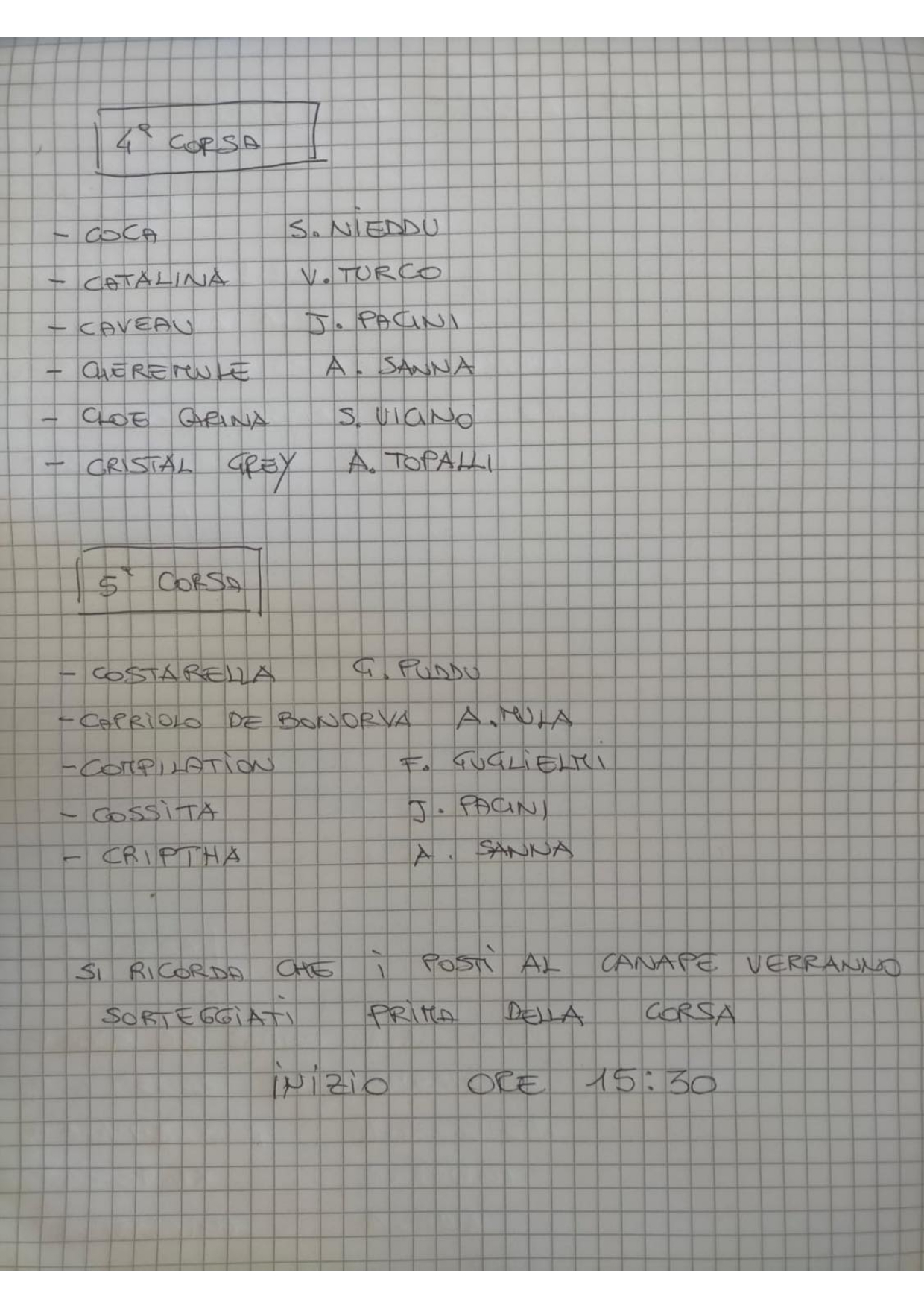 Mi sono giunte e batterie di domani 15/05 che si svolgeranno alla pista del campo sportivo di monteroni d’Arbia. Si tratta di 5 batterie con inizio alle 15.30. Ricorda l’organizzatore che i posti al canape saranno sorteggiati prima di ogni batteria.