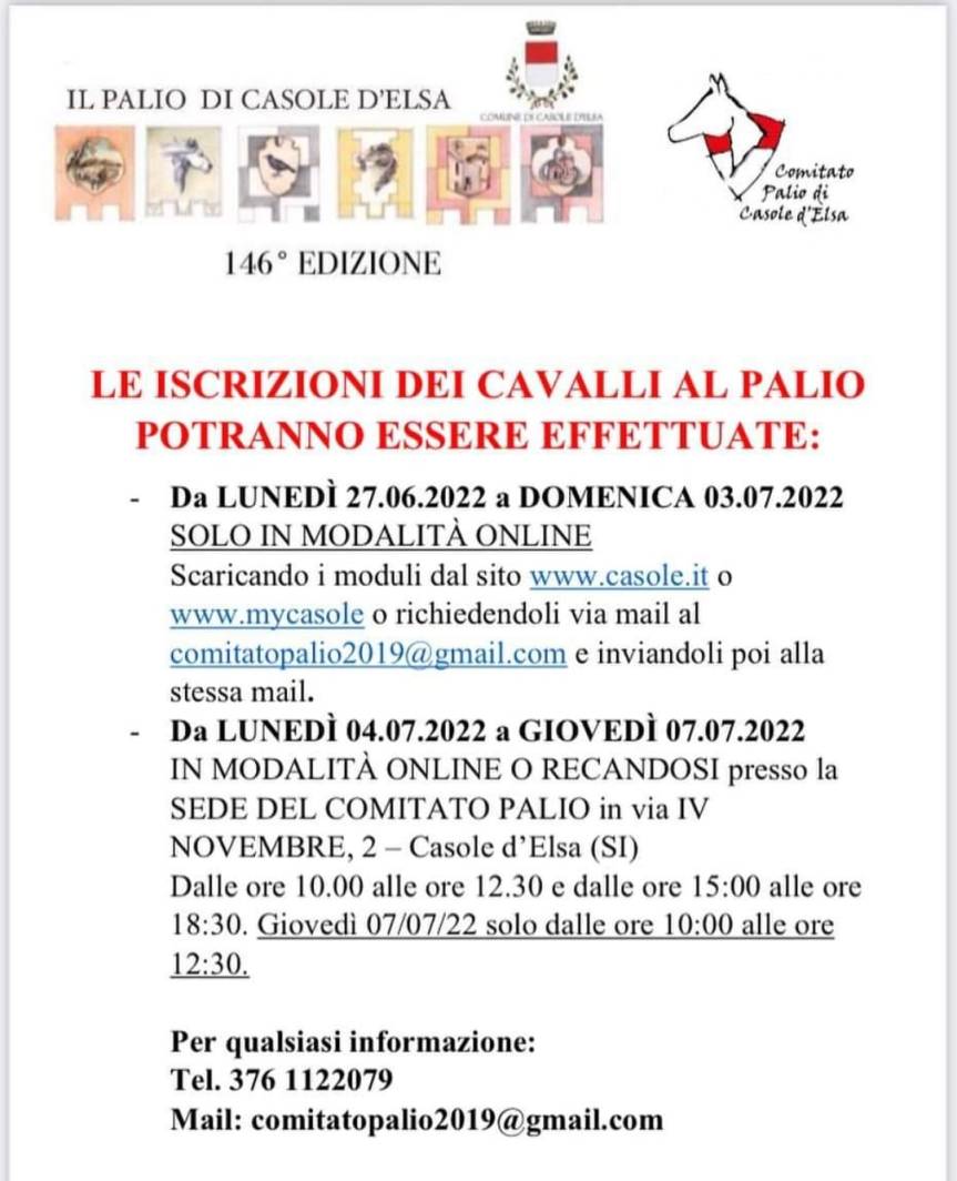 Palii, Palio di Casole d’Elsa: Ecco come poter iscrivere i cavalli al Palio Qua sotto nella foto che vi posto ci sono tutte le indicazioni per poter iscrivere i cavalli al Palio Condividi sul web: Fai clic per condividere su Facebook (Si apre in una nuova finestra) Facebook Fai clic per condividere su WhatsApp (Si apre in una nuova finestra) WhatsApp Fai clic per condividere su Telegram (Si apre in una nuova finestra) Telegram Fai clic per condividere su X (Si apre in una nuova finestra) X Fai clic qui per stampare (Si apre in una nuova finestra) Stampa Fai clic per inviare un link a un amico via e-mail (Si apre in una nuova finestra) E-mail Mi piace Caricamento... Correlati