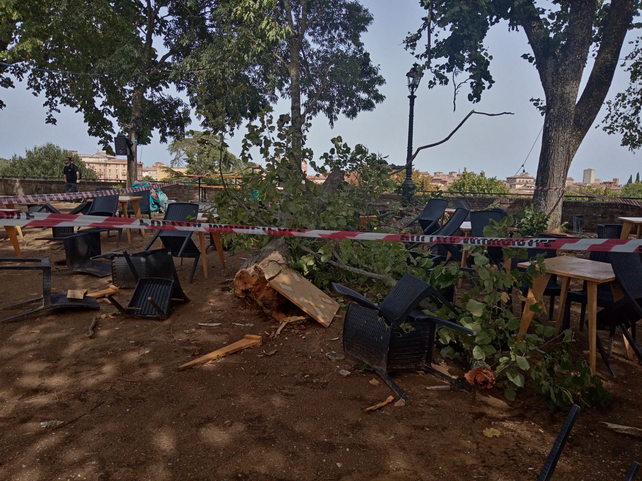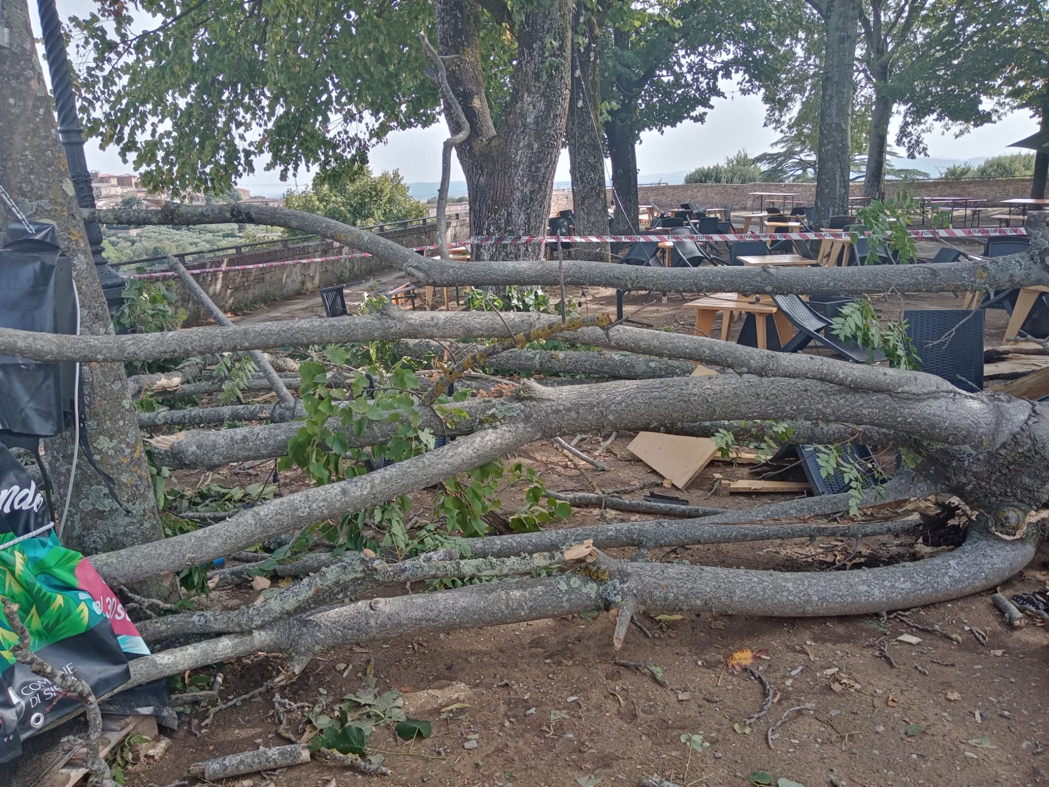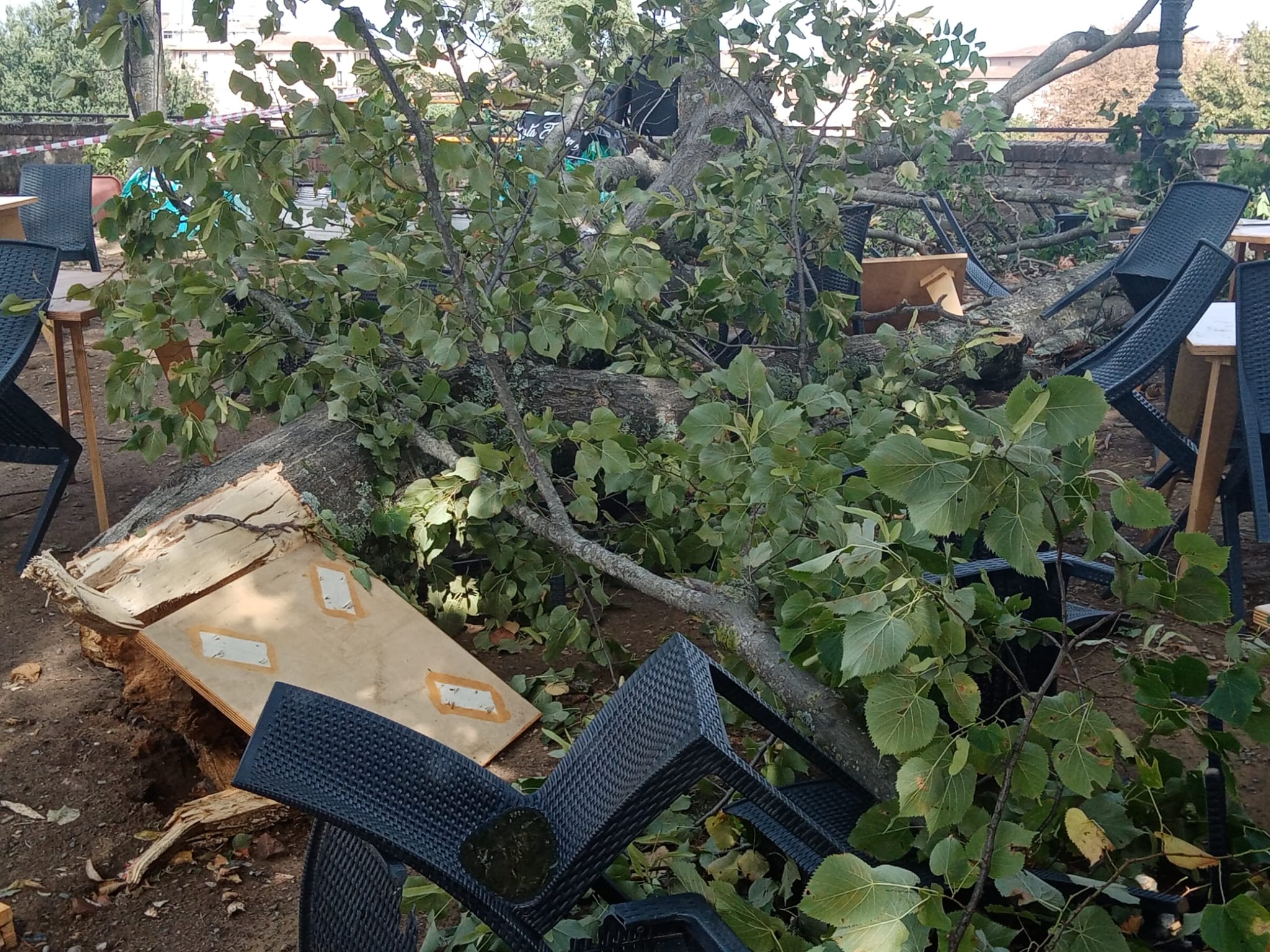 Un mio lettore appassionato mi ha appena passato le foto dei danni causati questa mattina dal nubifragio che si è abbattutto sulla città, causando seri danni agli alberi e alle strutture presenti all’interno della Fortezza Medicea. Come si evince dalle foto qua sotto le strutture presenti sono state seriamente danneggiate, come ingenti sono stati danni alla vegetazione presente, fra la quale i danni pèiù rilevanti sono quelli subiti dagli alberi. E attenzione che dal tardo pomeriggio sera è previsto il passaggio di un intenso fronte temporalesco come quello di questa mattina intorno alle ore 11.00 che ha fatto i danni che vi segnalo.