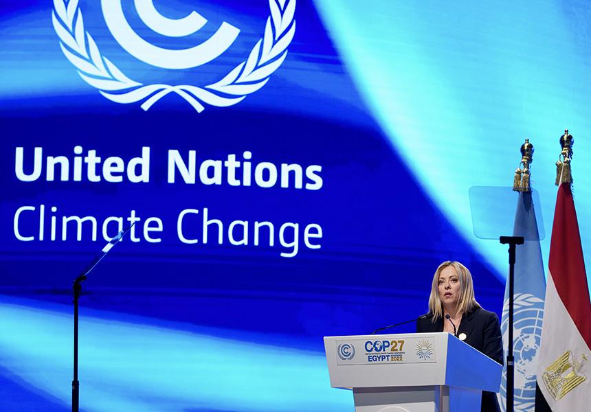 Il Presidente del Consiglio, Giorgia Meloni, ha partecipato al Vertice Cop27 a Sharm el-Sheikh (Egitto) del 6 e 7 Novembre, dove ha preso parte alla Cerimonia di apertura “Sharm El-Sheikh Climate Implementation Summit” e alla tavola rotonda “Just Transition”. In seguito ha tenuto l’intervento alla Sessione plenaria.
